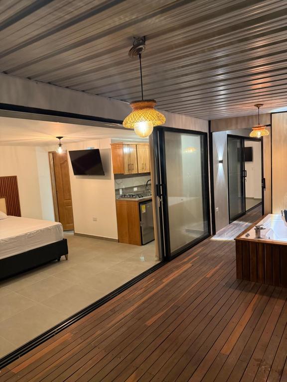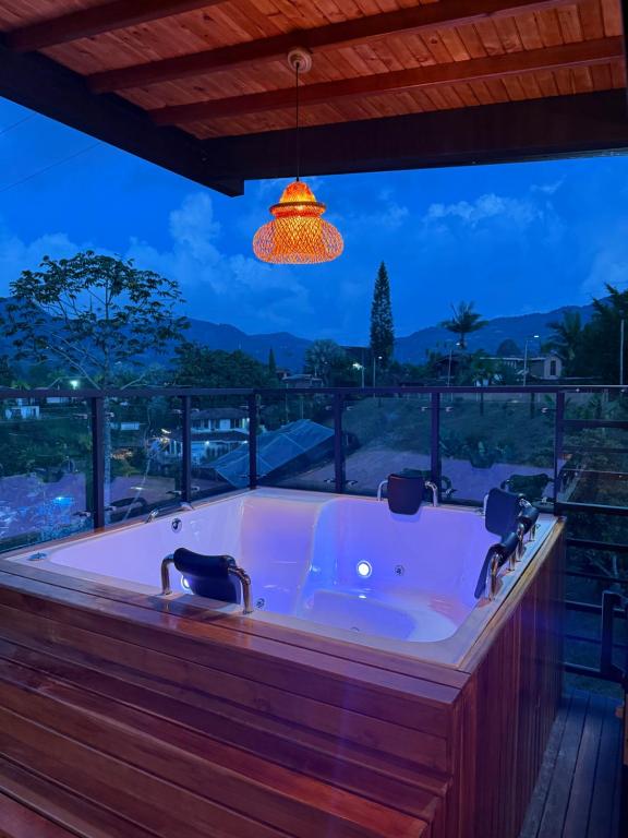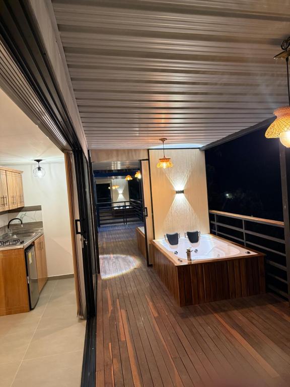 La bañera de hidromasaje forma parte de los servicios de bienestar en Zekkei House.